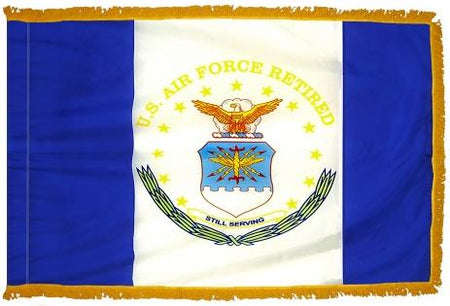 Flagman of America was started because we love this country. So we respect nothing more than the men and women that serve in our armed forces. Due to that respect, we only sell the highest quality, made in the U.S.A. military flags. Great looking and tough too! This nylon flag made from 100% Dupont Solar-Max nylon material. Our acid dye process saturates right through the flag producing deep and vivid colors that never crack or peel. Solar max fabric also has a special UV resistance built right into the weave of the fabric to minimize sun fade and chemical deterioration. It looks better and lasts far longer then ordinary nylon flags. The perfect choice for indoor presentation or parade use. The flag is finished with a pole hem with leather tabs and beautiful gold fringe. PROUDLY Made in the U.S.A.