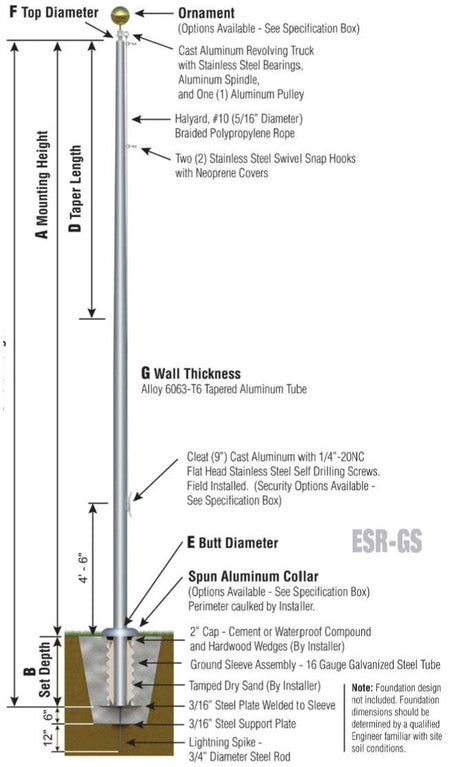 50' Flagpole Specs VIEW