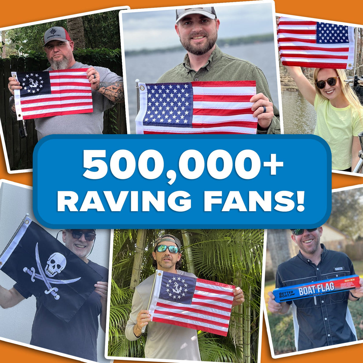 This premium 12x18 inch boat flag is a marine-grade American flag made with high-quality water and sunlight resistant nylon and features exceptional embroidered stars and sewn stripes. Our boat flag comes with a flag pole, mounting bracket and screws so will have your flag up and flying in no time! It can be mounted to rails up to 1 inch. It’s the perfect accessory for your boat as it’s designed for outdoor use and the marine lifestyle. The material used is lightweight, durable, and fade-resistant, making it perfect for any kind of weather. Our high-quality American flag for boats is excellent for boat-enthusiasts and patriots alike and makes a great gift! Our 12x18 boat flag is great for showing your American pride every day or for celebrating holidays like Independence Day and Labor Day.