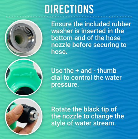 Features a twist nozzle adjustable spray pattern and thumb controlled water pressure gauge for finely tuned control. This hose pressure nozzle's comfortable, no-squeeze handle reduces hand fatigue, making cleaning jobs easier. Simply set and spray! This boat hose nozzle is compatible with a standard garden hose. Try it risk-free for 30 days - love it or get your money back!