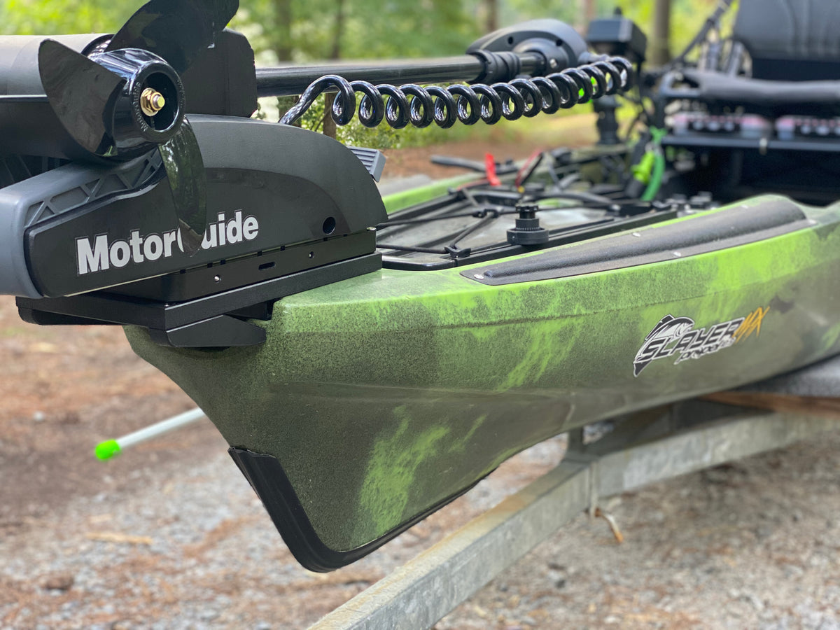 The OneObjective Bow Mount Trolling Motor Plate gives you the ability to mount a MinnKota or a Motorguide to the front of your kayak. With out having to drill holes in some kayaks. "Some Kayaks may need holes drilled to mount." It's built strong to handle a 80 lbs thrust motor. But light so your not adding unneeded weight. You use the four holes to mount the quick disconnect plate. All stainless steel hardware is included to install the mount Our mount is fast and easy to install. "Less then 10 mins"