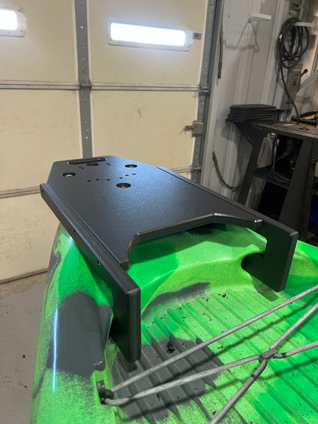 The OneObjective Bow Mount Trolling Motor Plate gives you the ability to mount a MinnKota or a Motorguide to the front of your kayak. With out having to drill holes in some kayaks. "Some Kayaks may need holes drilled to mount." It's built strong to handle a 80 lbs thrust motor. But light so your not adding unneeded weight. You use the four holes to mount the quick disconnect plate. All stainless steel hardware is included to install the mount Our mount is fast and easy to install. "Less then 10 mins"