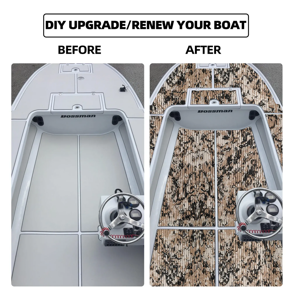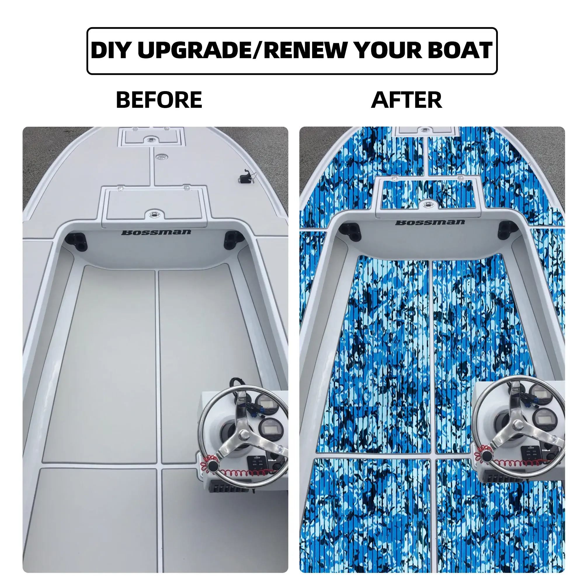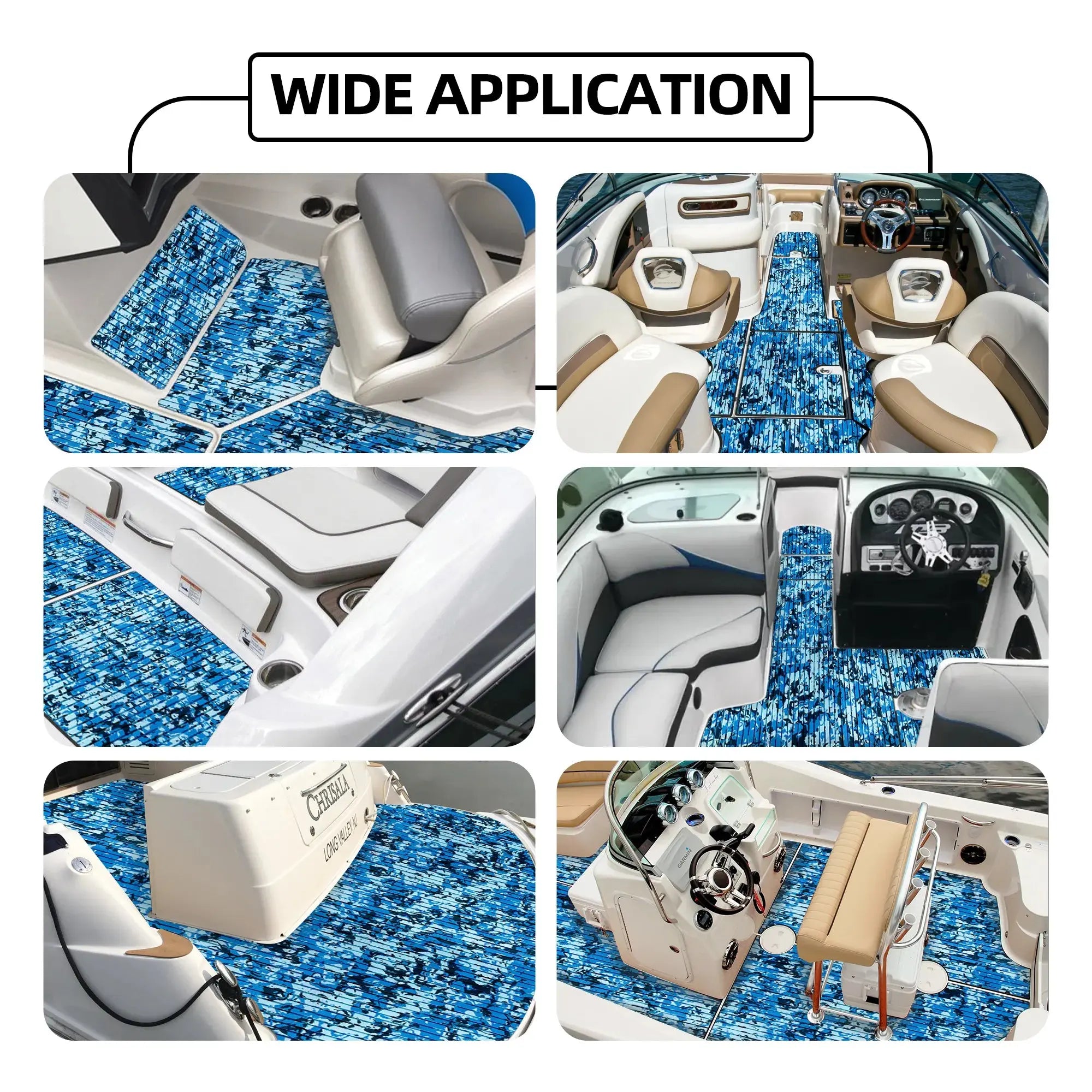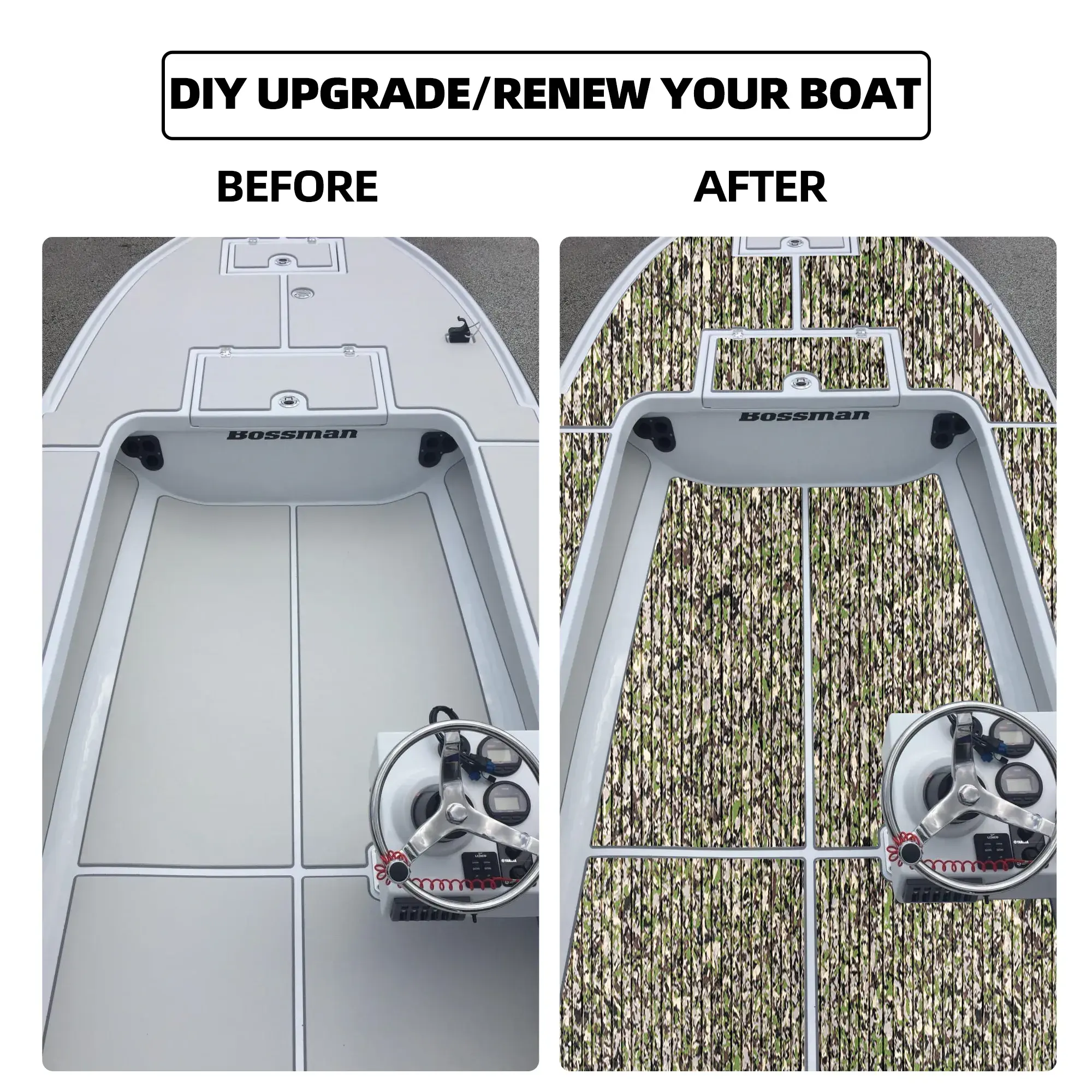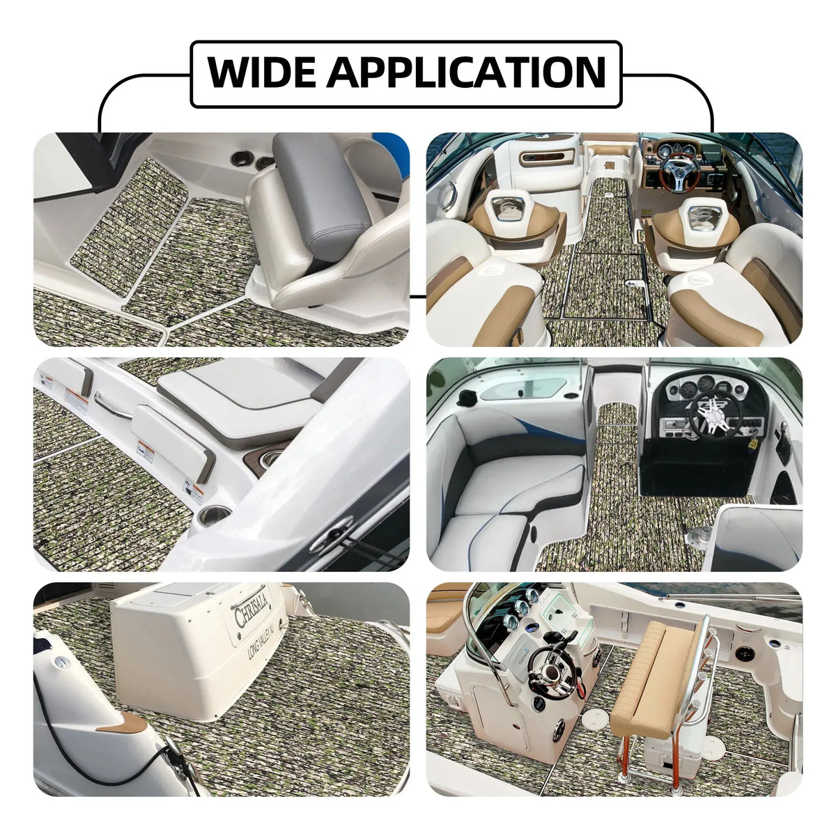 - Wide Application - Very nice camo boat flooring, different colorful patterns available. They are perfectly used for Motorboat, Jon Boat, RV Yacht Kayak, Surfboard, Swimming Pool, Garden flooring and etc