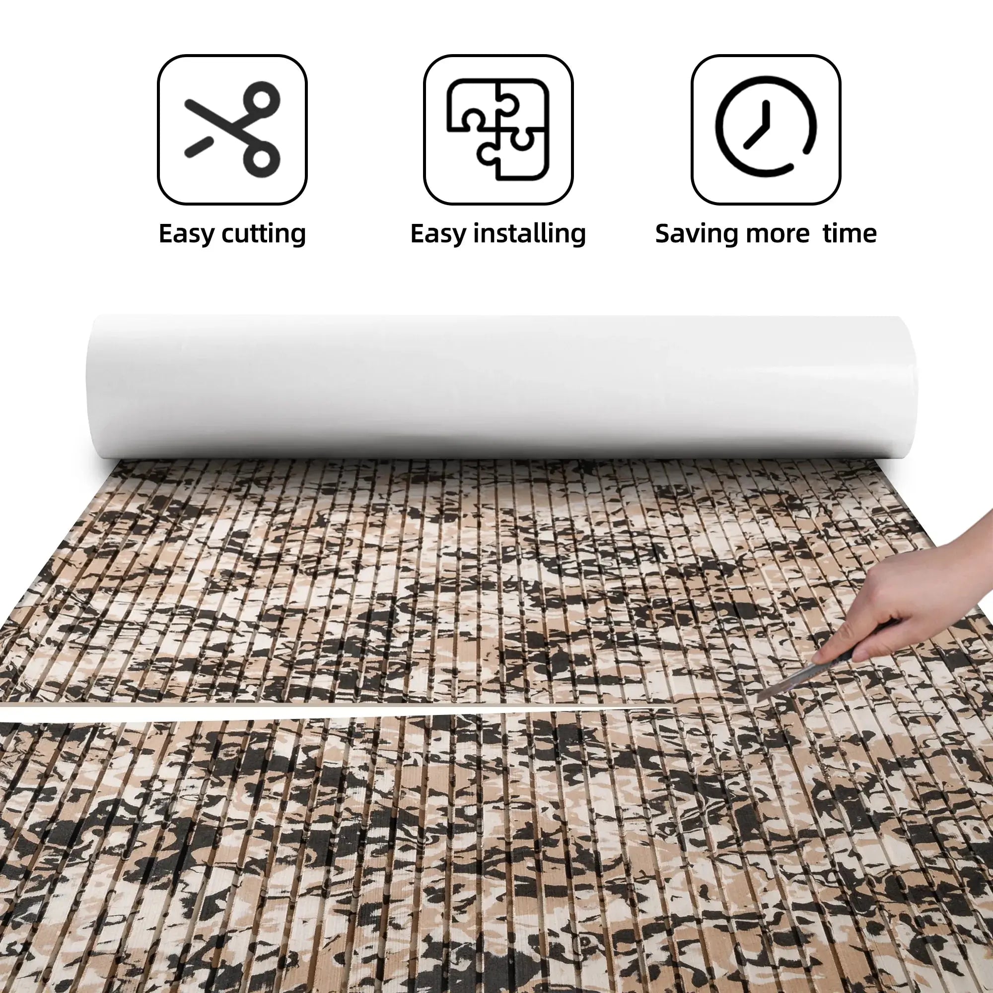 - Easy Installation Boat Flooring- You can use a cutting tool to cut this eva foam boat flooring sheet to any size for installation, with strong glue on the back (please keep the installation site clean). Very easy to cut and hard to fall off after cutting, and it is flat and beautiful. You can enjoy DIY with this marine flooring materials