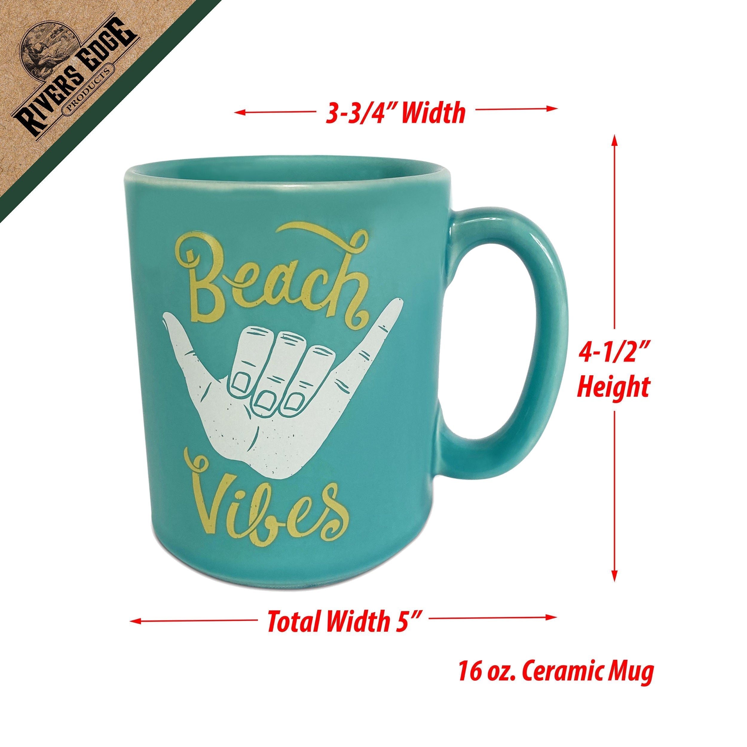 This beach vibe ceramic mug by River's Edge Products is ideal for any beachgoer. Drink your morning coffee, tea, hot chocolate, or other beverage out of this highly detailed mug.