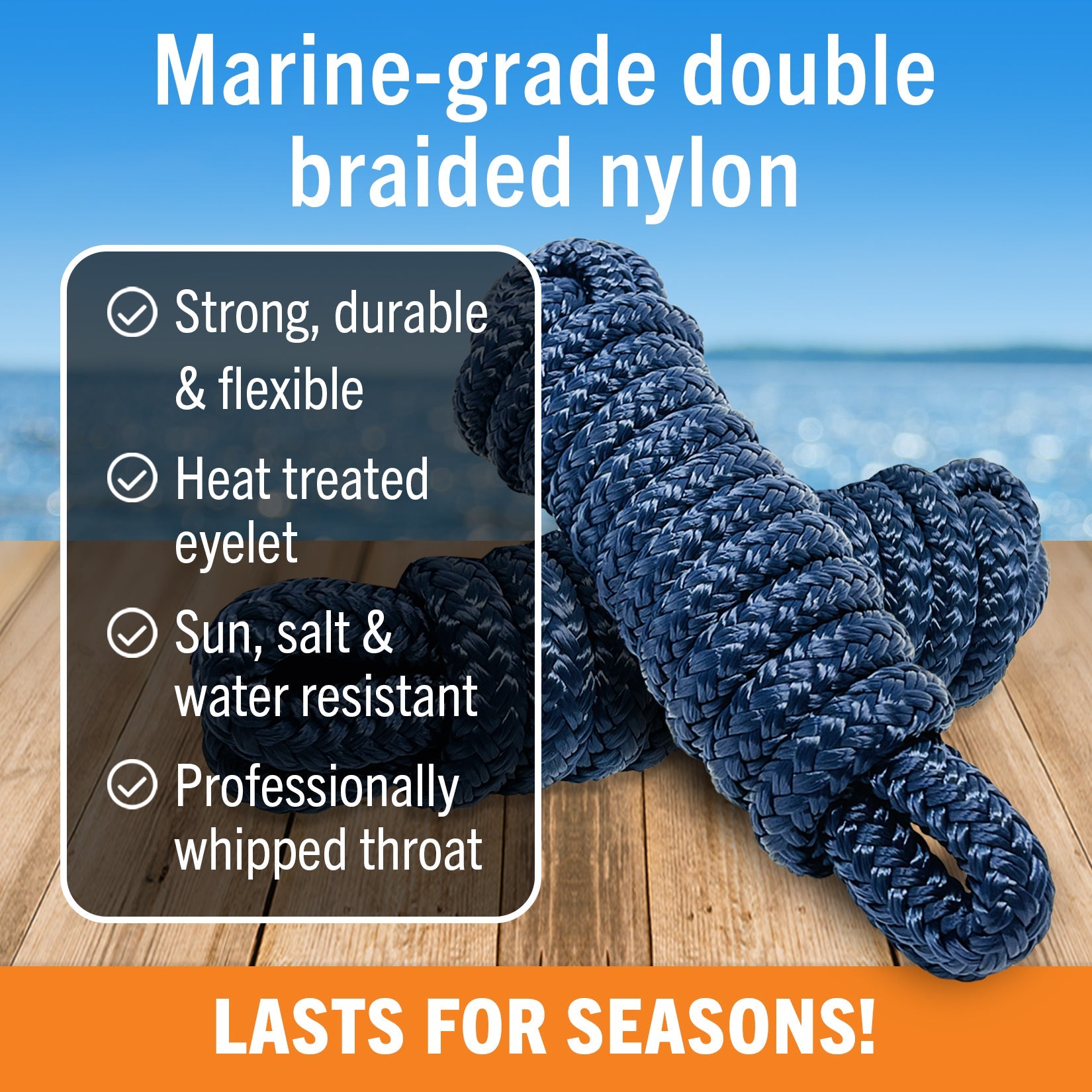 - Marine-Grade Double Braided Nylon: Ultra-durable, premium-quality fender ropes that are sun, salt & water-resistant to last for seasons.
