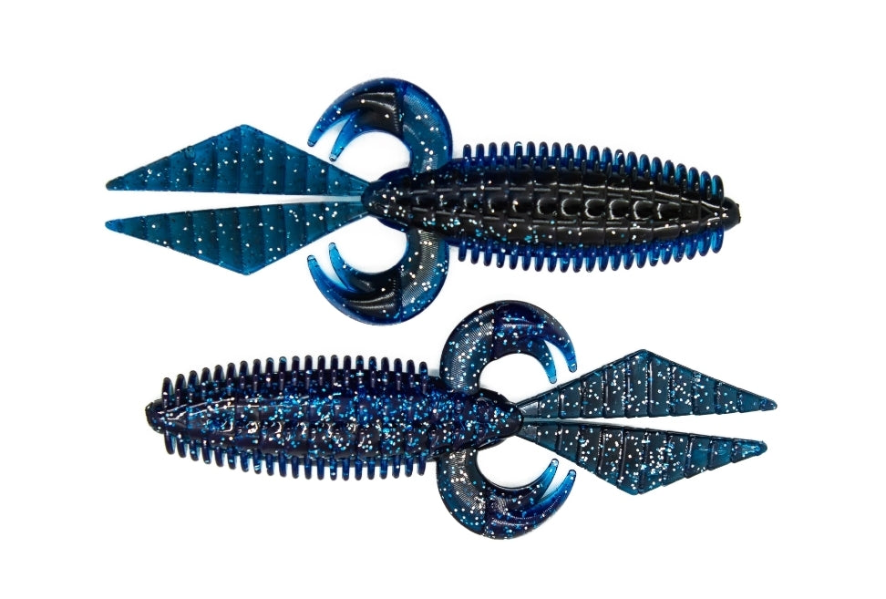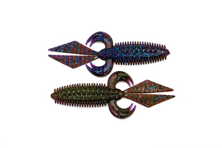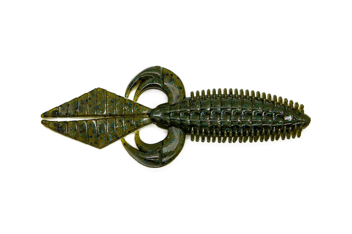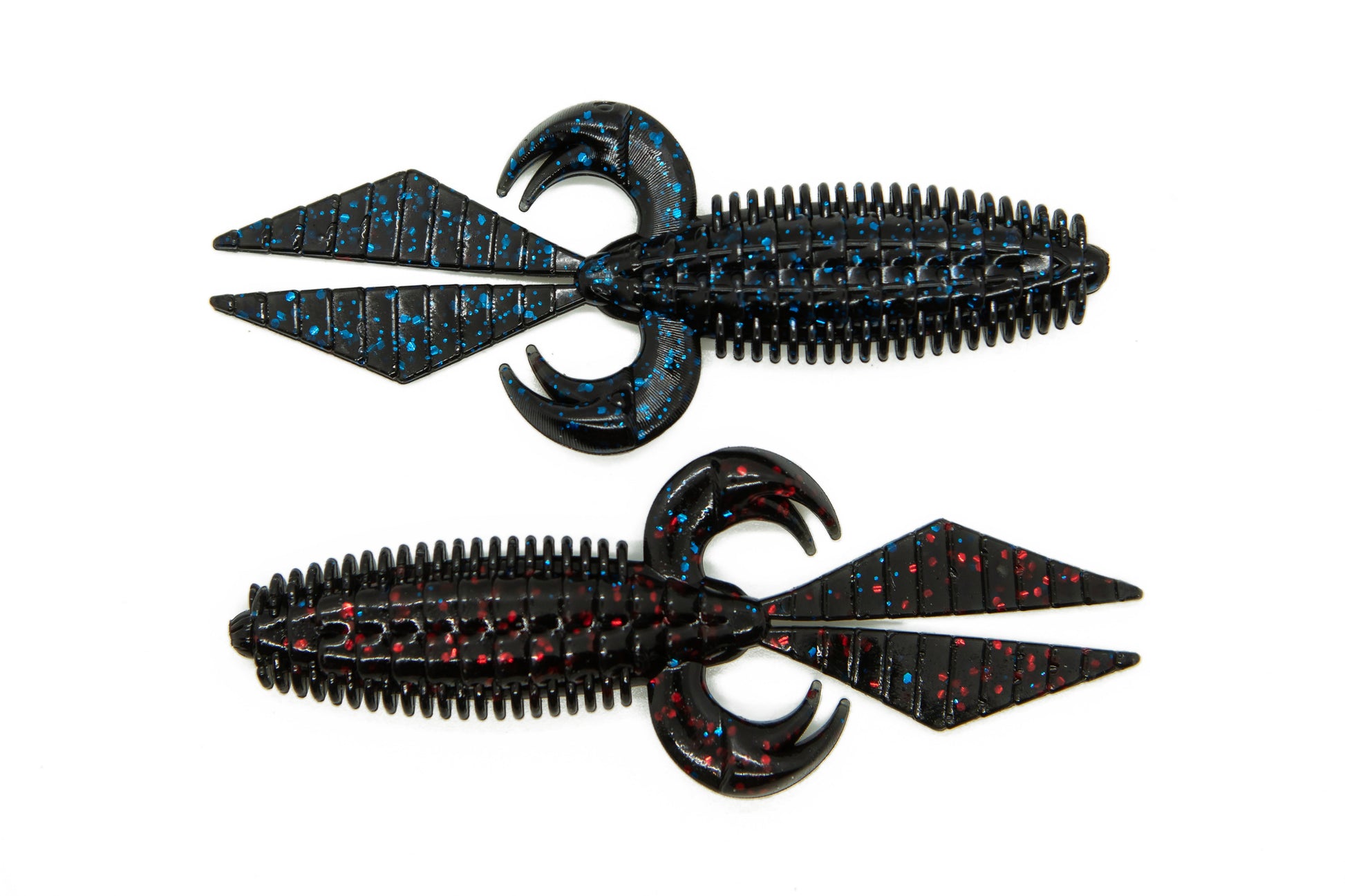 V&M Flat Wild is designed by 2013 Bassmaster Classic Champion Cliff Pace to allow for a better hook up ratio in a small creature bait. Cliff designed the Flat Wild with a half ribbed and half stair stepped body to help push water on the fall and also to trap air to allow the bait to be more flexible which will allow for better hook penetration. The pinchers on the side allow a subtle attraction of movement while also having the darting action on the fall. The bait measures at 4” in the length and is available in 10 colors.