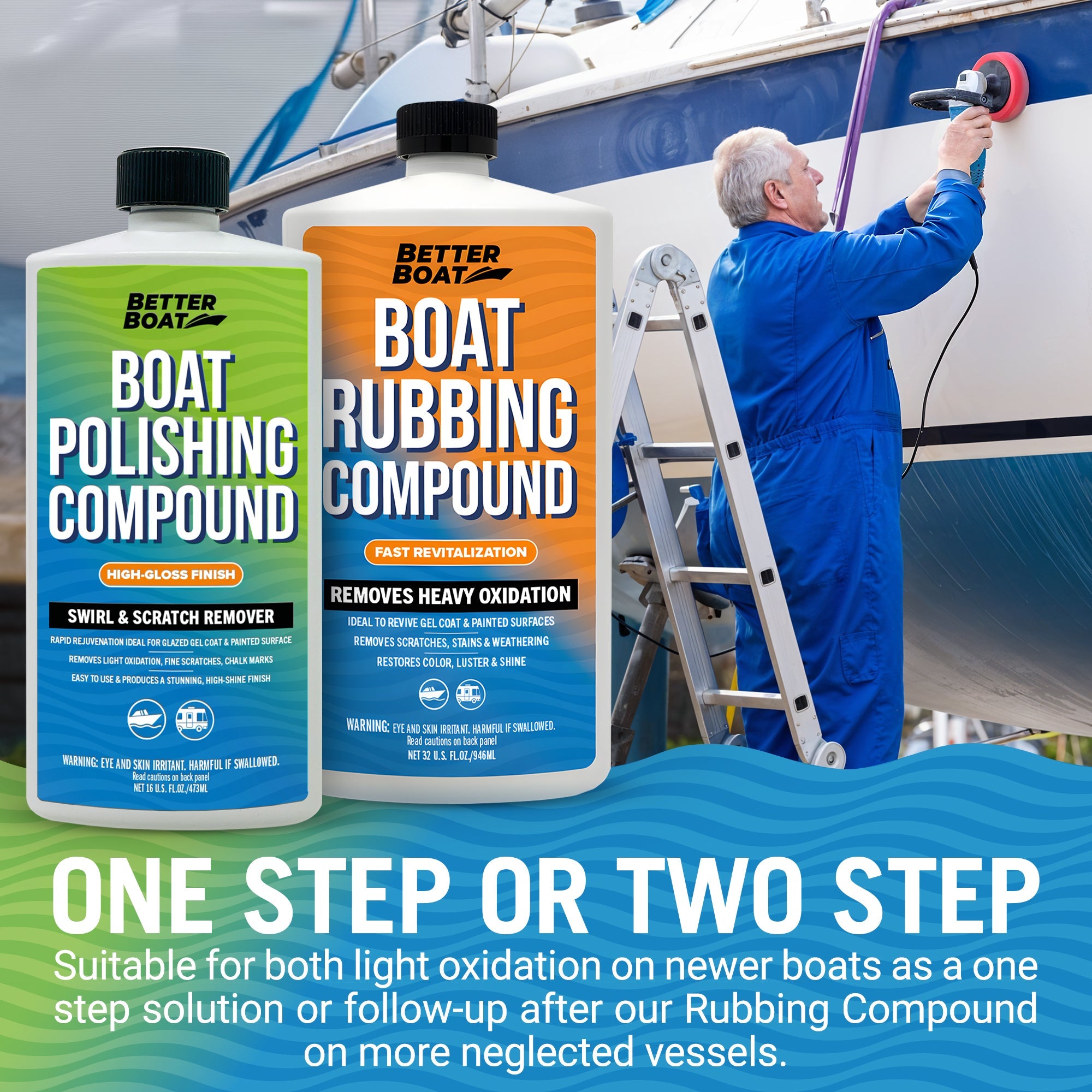 ONE STEP OR TWO STEP: Ideal as a one-step solution for light oxidation on newer boats or as a follow-up after our Rubbing Compound on more neglected vessels. Our polishing and rubbing compounds cover a wide range of restoration needs.