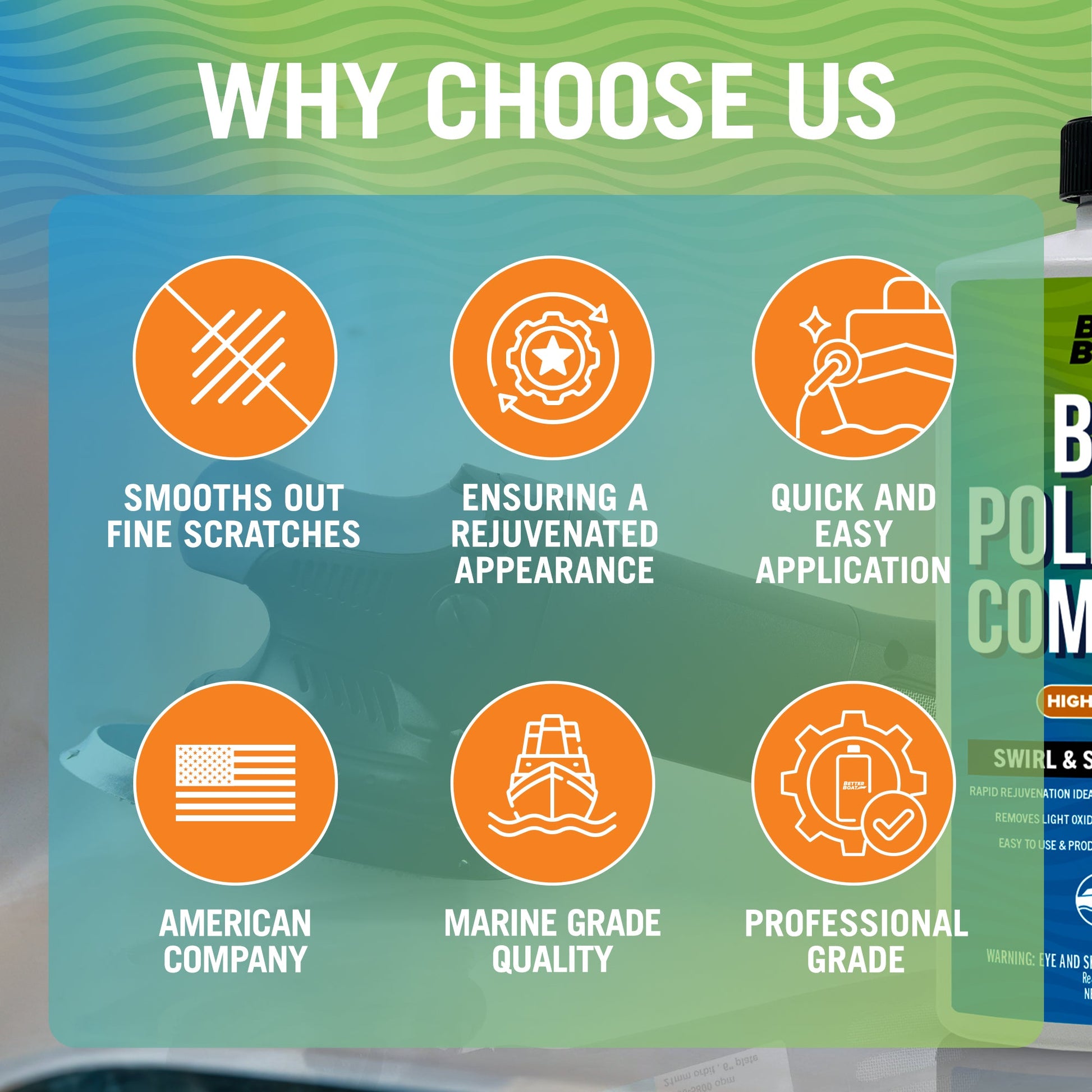 EASY TO USE: Effortlessly apply our fiberglass polishing restorer for boats with a machine polisher and buffing pad. This compound delivers a fast cut and excellent finish, getting your boat ready for the water in no time.