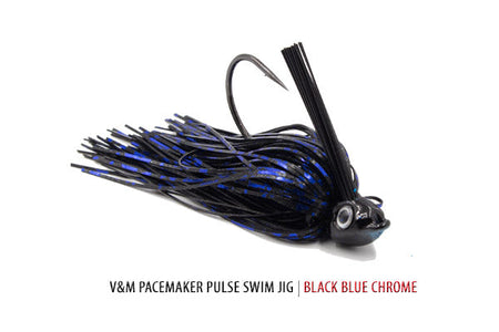 The Pulse swim jig has a custom built oversized 30 degree hook that allows for better hook sets and stands up to braided line use in heavy cover. The head shape is made to direct the hook point away from cover when contacting it.