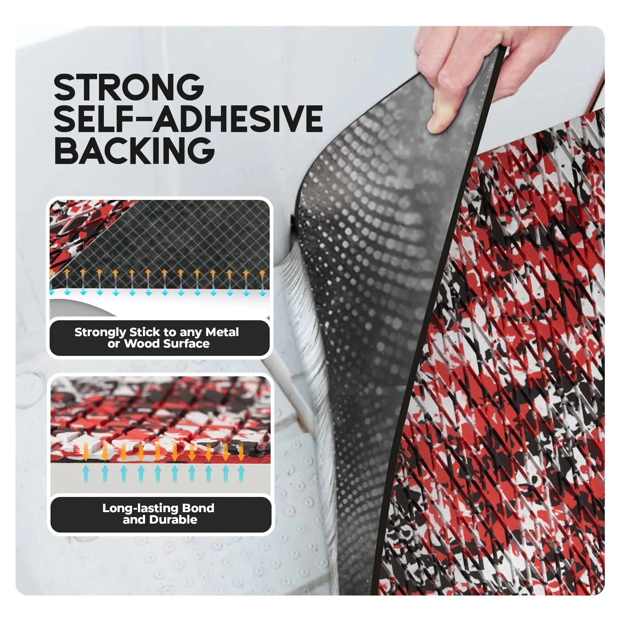- Easy Installation Boat Flooring- You can use a cutting tool to cut this eva foam boat flooring sheet to any size for installation, with strong glue on the back (please keep the installation site clean). Very easy to cut and hard to fall off after cutting, and it is flat and beautiful. You can enjoy DIY with this marine flooring materials