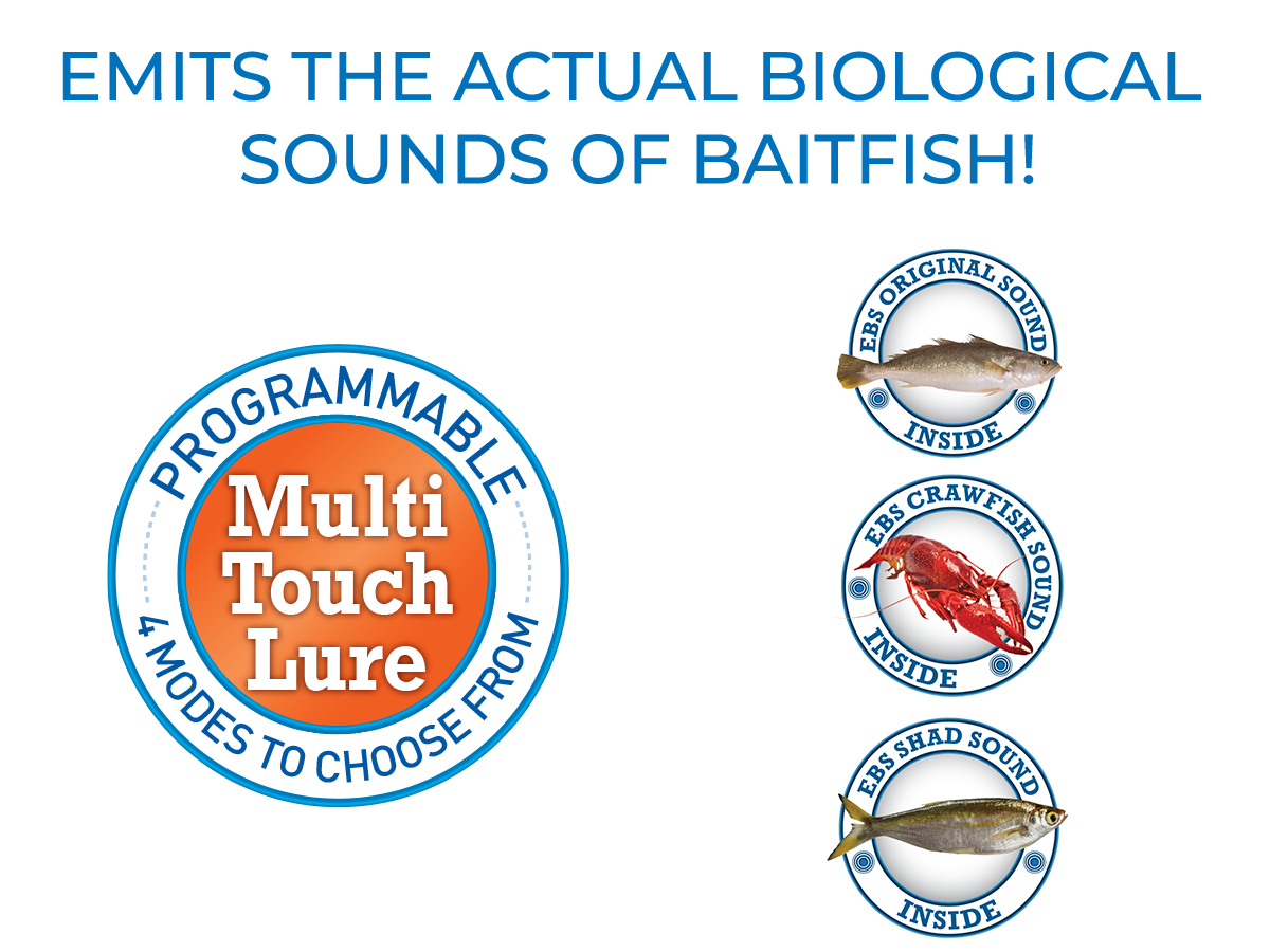 The slow-sinking JERKMASTER 121 was designed by Team Livingston Pro Hank Cherry to dart/slash in the 4- to 6-foot range. Cast it a country mile. The JerkMaster 121's darting action unites with EBS MultiTouch TechnologyTM, giving you a mid-depth jerkbait to draw fish from double the distance of a traditional jerkbait. The MultiTouch sound feature effectively provides 3 baits in 1.