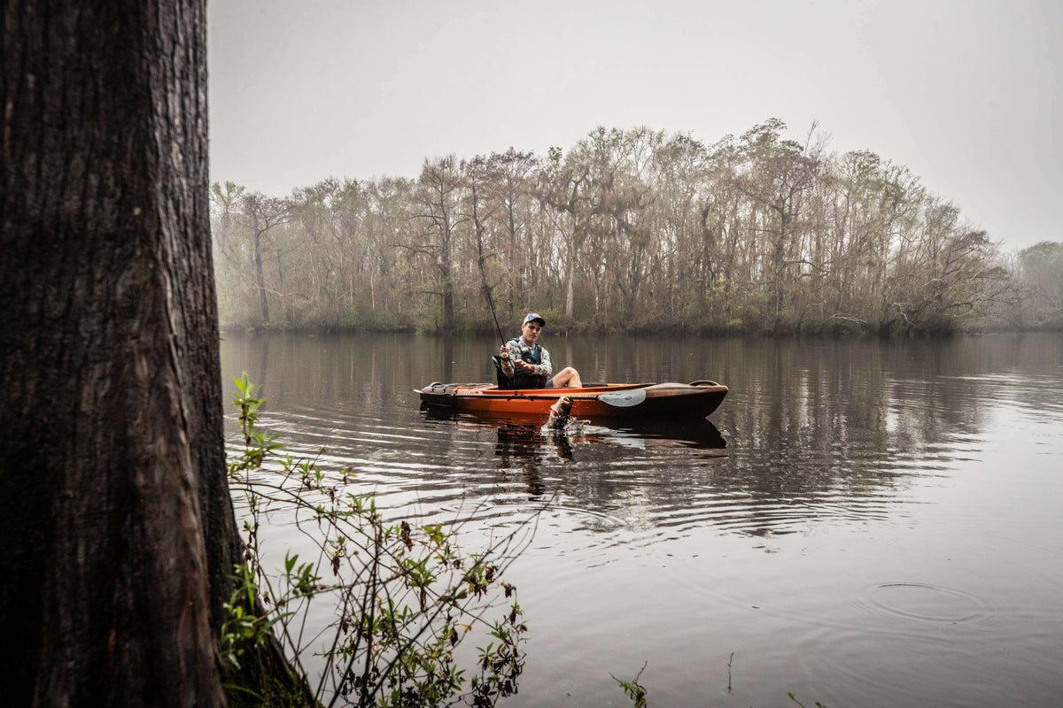 This sit-inside design keeps you drier in chop and more agile in tight water. It’s compact enough to maneuver solo but wide enough to feel solid when you cast, reach, or twist.
