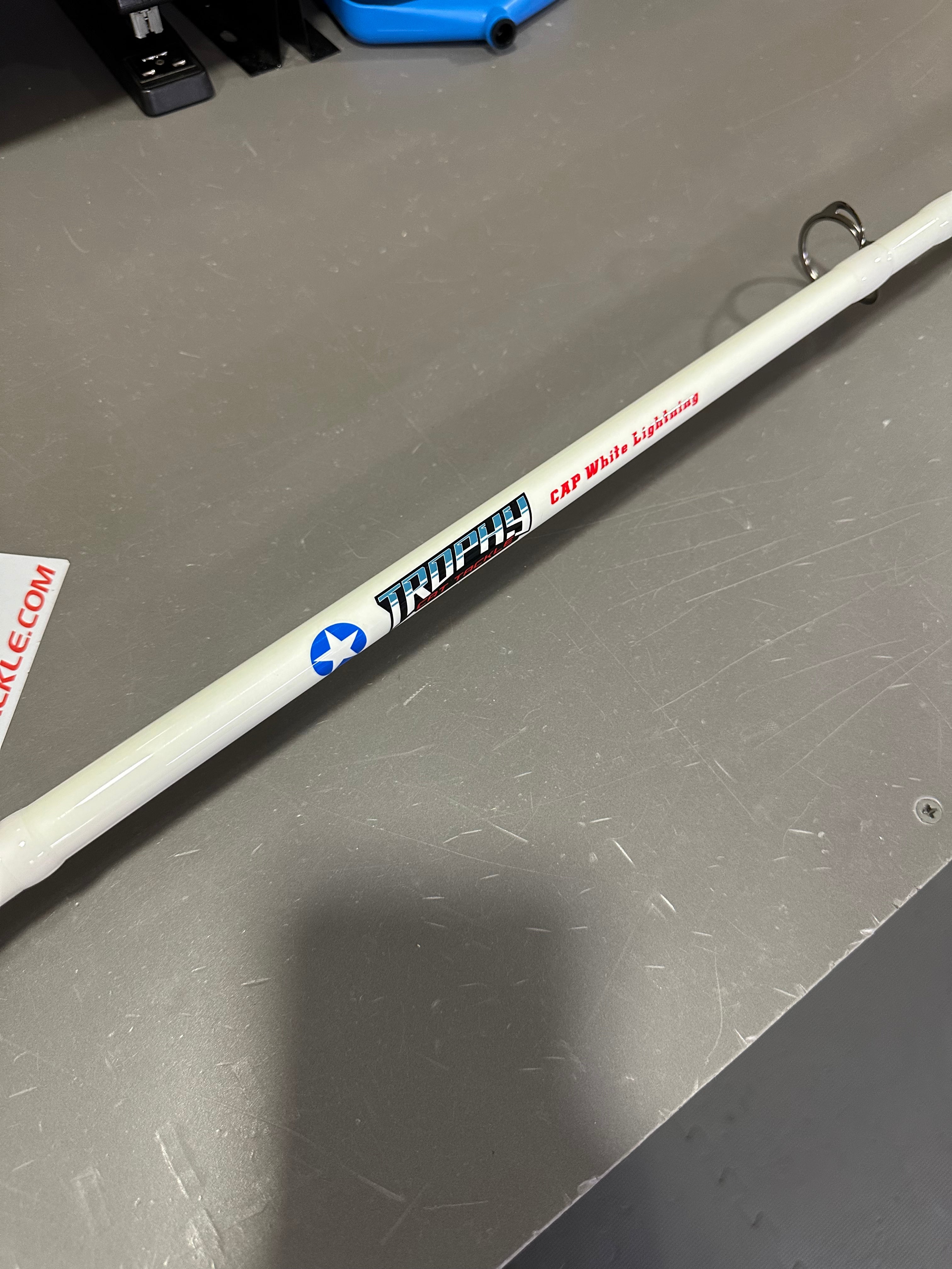 The White Lightning Spinning Rod from Trophy Cat Tackle is built for serious catfish anglers who demand performance, durability, and visibility in any condition. Engineered with strength and sensitivity in mind, this rod features a rugged blank that can handle monster catfish while still offering the control you need for accurate casting.